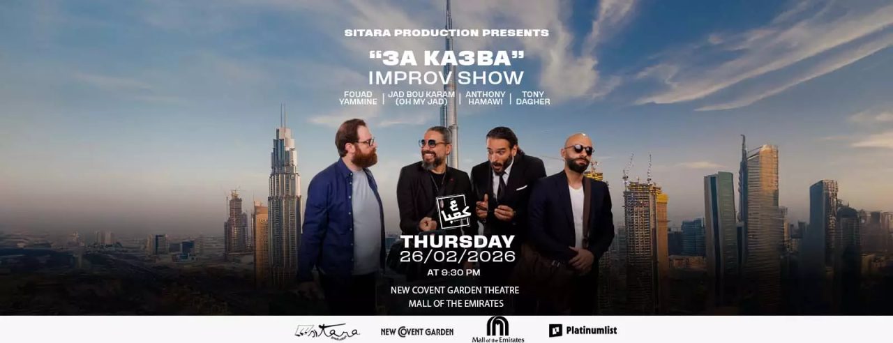 Dubai’s Mall of the Emirates will host 3aKa3ba on Thursday, 26 February 2026, with doors at 9:00 PM and a 9:30 PM start. The show runs at The New Covent Garden Theatre, Mall of the Emirates, Level 2, Al Barsha First, Sheikh Zayed Road, Dubai. For quick venue help, the theatre lists WhatsApp +971 56 948 7748 for enquiries and directions. Tickets currently start at approximately AED 175 and can reach about AED 325 depending on seating. Buy through PLATINUMLIST if you want the official ticket flow.