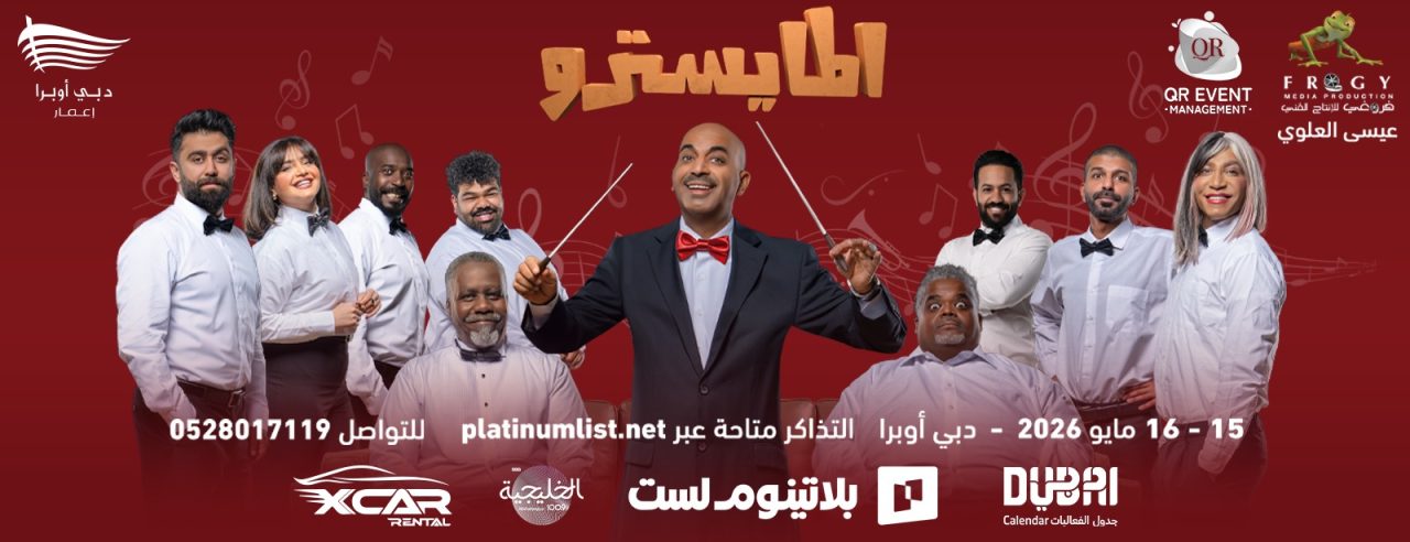 Dubai Opera will stage Al Maestro on Friday, May 15, 2026 and Saturday, May 16, 2026, bringing a two-night Arabic comedy run to Downtown Dubai. Dubai Opera can be reached on 04 440 8888, and the venue address is Sheikh Mohammed bin Rashid Boulevard, Downtown Dubai. Current listings place tickets from AED 99, while higher seating categories are currently shown at approximately AED 640 depending on section and date. The published Friday performance time is 20:30, and official ticketing notes say auditorium doors generally open 30 minutes before the show starts. This is a ticketed theatre evening, so arriving early matters.