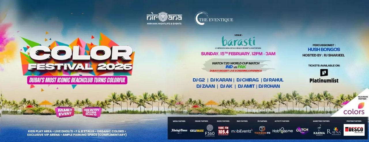 The event is presented by Nirvana Nightlife and The Eventique, both known for large-format cultural and entertainment programming in the UAE. Their focus centers on safe, well-managed public celebrations that remain vibrant without becoming chaotic. Organic colours, controlled entry, and strict security policies underline this approach. In addition, the integration of cricket, music, and kids’ activities reflects the region’s diverse audience. Consequently, the festival feels inclusive rather than niche.