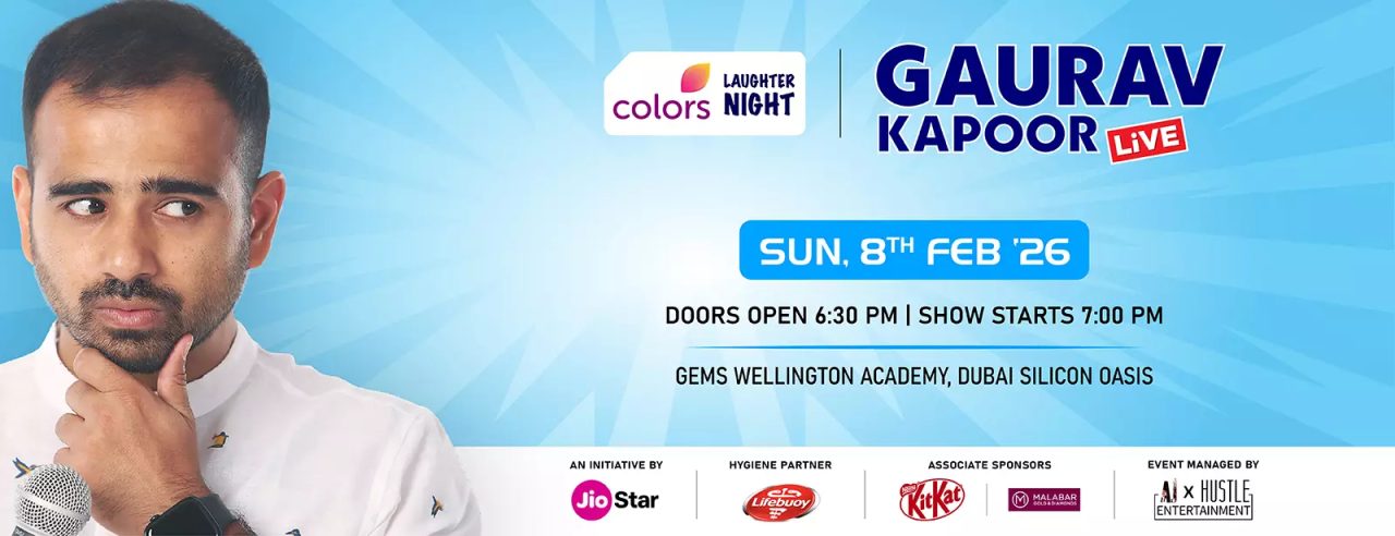 Dubai’s live-comedy calendar adds another Hindi-language night on Sunday, 8 February 2026, as Colors Laughter Night brings Gaurav Kapoor to GEMS Wellington Academy, Dubai Silicon Oasis. The show starts at 7:00 PM, with doors opening at 6:30 PM, and the venue address is D54 Street, Dubai Silicon Oasis, Dubai. For venue coordination, the academy’s published phone number is +971 4 515 9000, and the mailing address is PO Box 49746, Dubai, UAE. Entry is limited to guests aged 16 and above, and the performance language is Hindi.