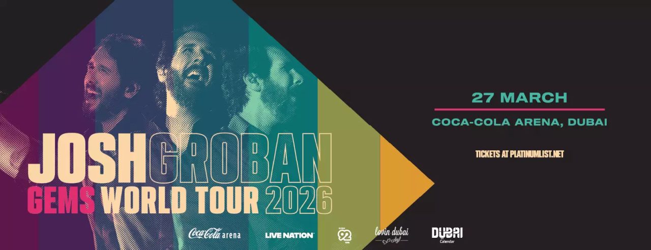 Dubai will welcome Josh Groban’s GEMS World Tour on Friday, 27 March 2026 at Coca-Cola Arena, City Walk. The venue hotline is 800 22 33 88, and the box office email is boxoffice@coca-cola-arena.com. Coca-Cola Arena sits in City Walk at the Al Wasl and Al Safa Road junction, Dubai, and City Walk customer service lists +971 4 590 5090. The concert start time is 8:00 PM, and tickets begin from AED 349 (approximately, based on availability). Every guest above 12 months needs a valid ticket, and under-16 guests must arrive with an adult guardian.