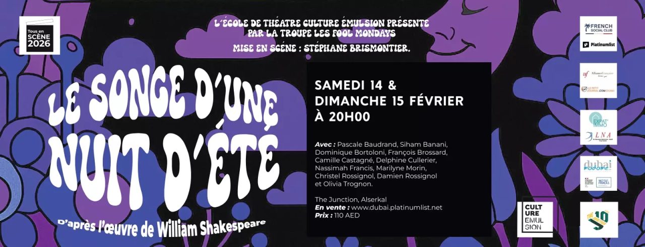 The performance is presented entirely in French, offering a distinctive cultural experience within Dubai’s multilingual arts scene. While the tone is playful and imaginative, the production remains respectful of Shakespeare’s original spirit. The show is suitable for a wide age range, especially families with older children, as well as adults seeking a light yet intelligent night at the theatre. The vibe throughout the evening is whimsical, romantic, and slightly surreal.