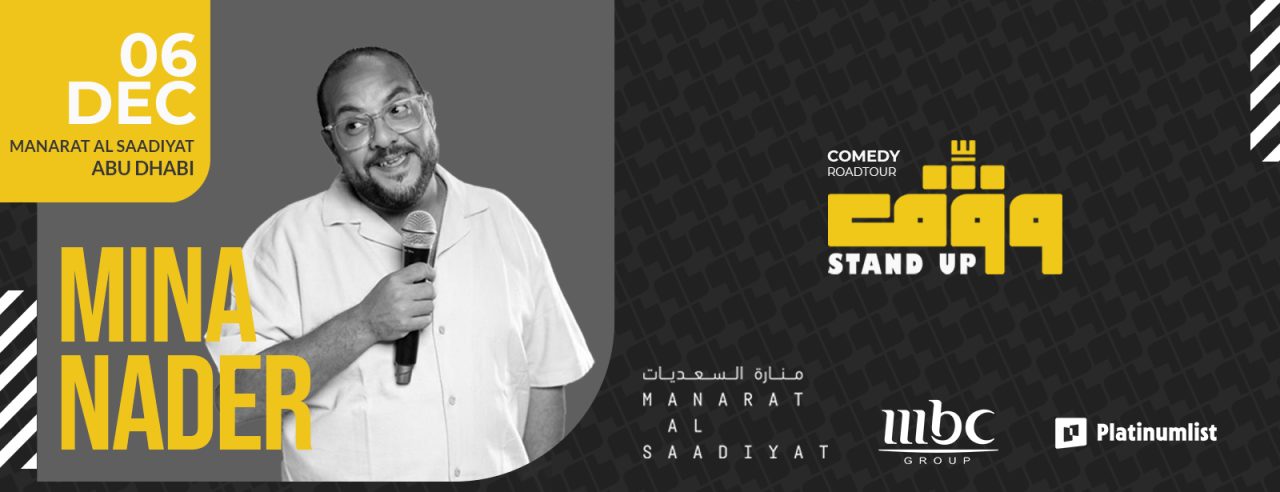 Mina Nader built his reputation through Arabic stand up that blends sharp observational jokes, diaspora stories and quick improvisation with audience members. Over recent seasons he has moved from local stages to regional tours across the Gulf, North Africa and Europe, while still keeping an intimate, conversational tone on stage. In Abu Dhabi he brings this style into a theatre setting, promising a full length set that leans heavily on fresh material and live interaction rather than recycled clips. The official event description highlights a night of laughter crafted as a complete experience, from the first gag to the last callback. Because the entire performance is in Arabic, guests will need strong Arabic comprehension to enjoy the show fully. This makes the evening particularly attractive for Arabic speaking residents and visitors who prefer stand up in their own language.