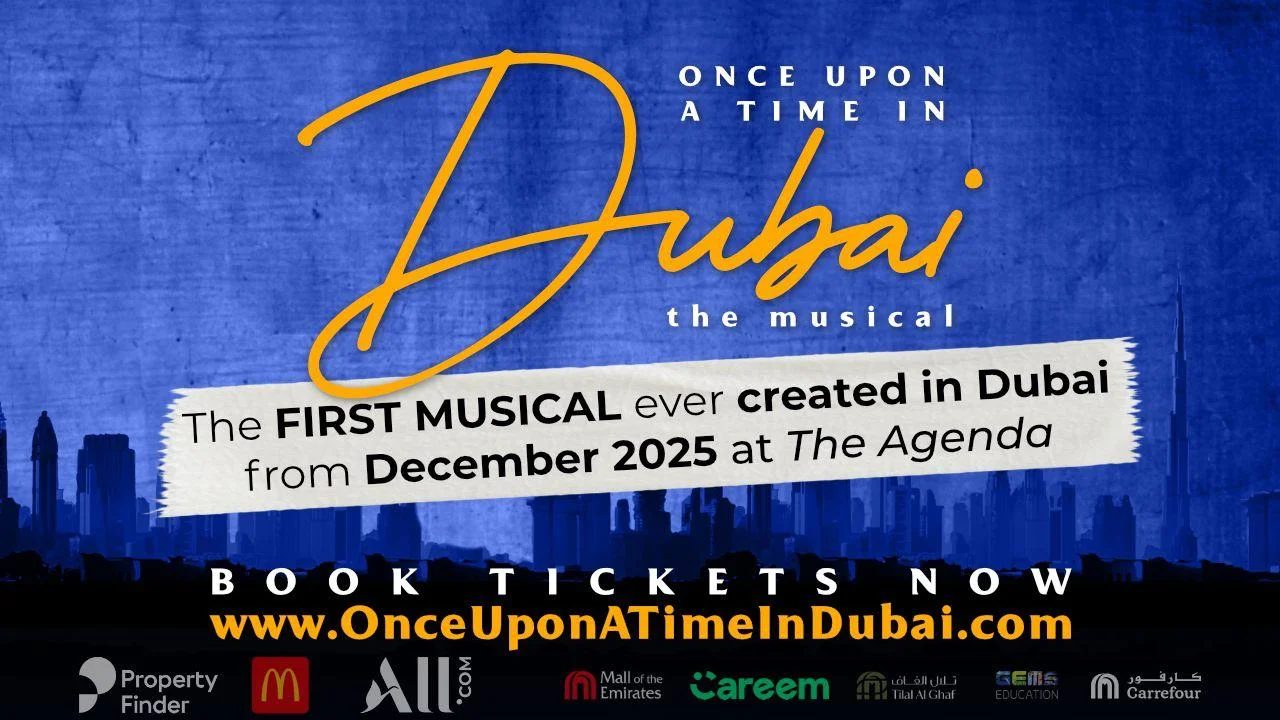 Dubai Media City hosts the world-premiere musical “Once Upon a Time in Dubai” on Saturday, December 20, 2025. The show starts at 7:30 PM at The Agenda, Dubai Media City. The venue address is Abdullah Omran Taryam St, corner Al Jaddi St, Dubai Media City, Dubai, UAE. For venue enquiries, call The Agenda on +971 (0)4 580 9159. IMPORTANT: Bring a valid ID and your ticket confirmation for entry.